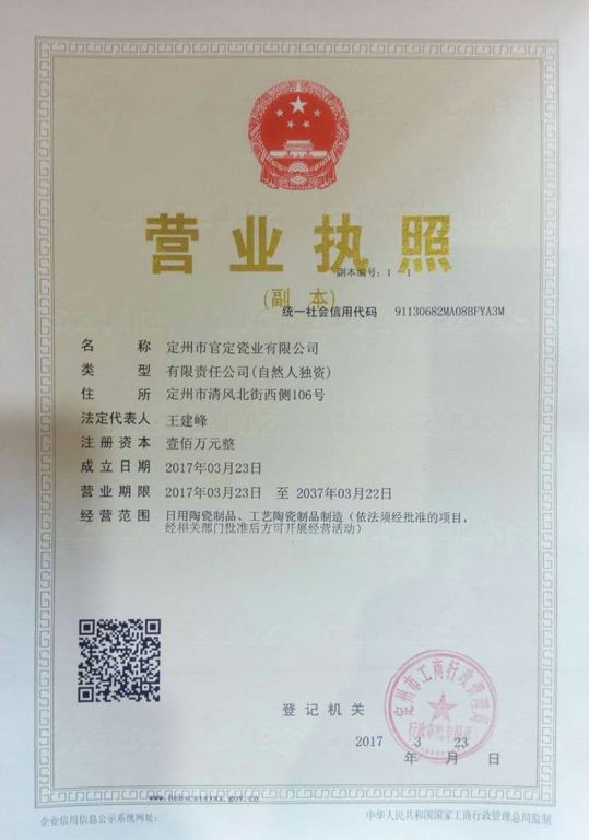 定州市官定瓷業(yè)有限公司,位于“定瓷文化發(fā)祥地”——定州,其前身是官瓷定窯文化交流中心,成立于2013年,官定瓷業(yè)是一家集定窯文化推廣,定瓷生產(chǎn)、科研的市級重點龍頭企業(yè),主要經(jīng)營定瓷茶具、餐具,定瓷工藝品等。